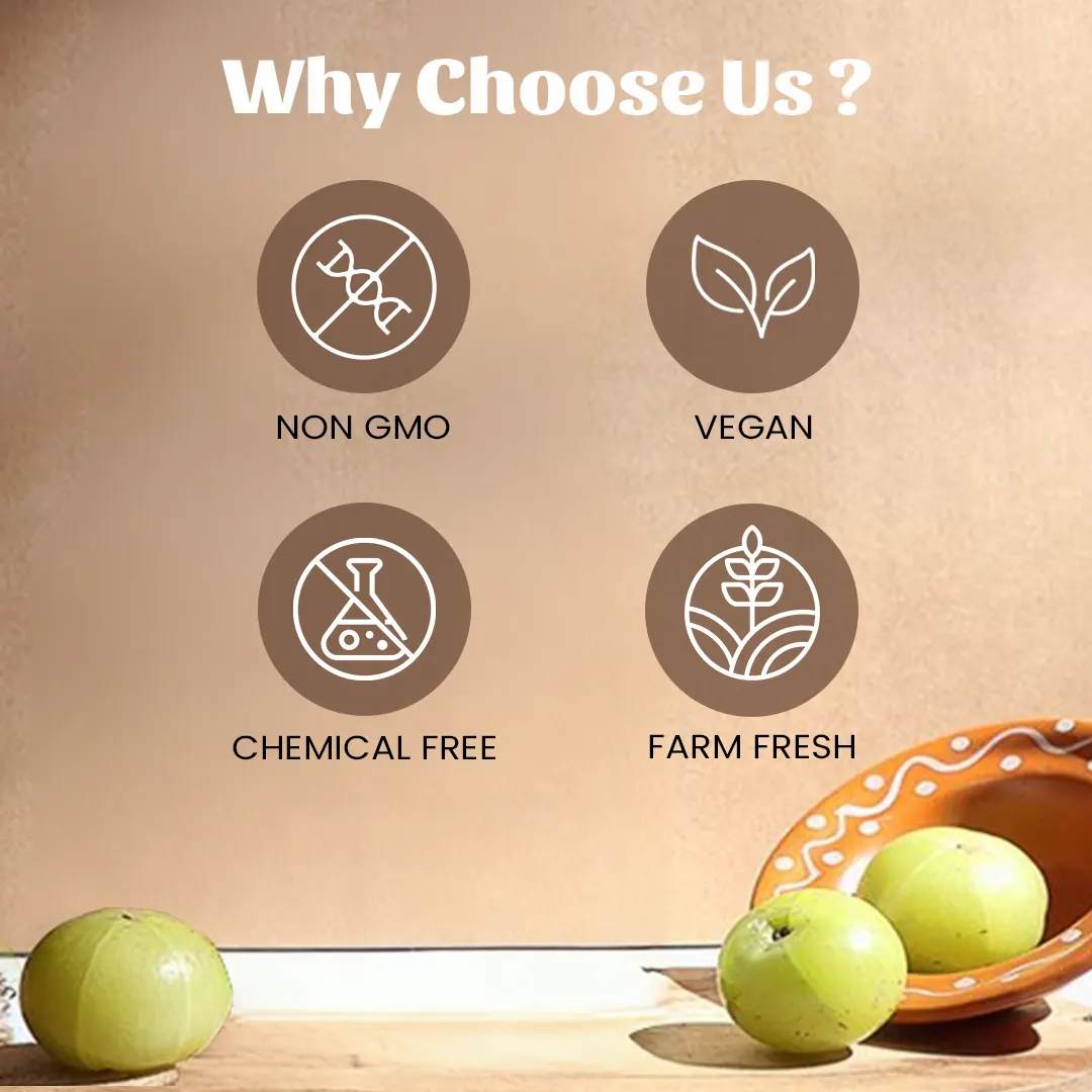 Neel Ayurvedics Amla powder is a pure, natural and organic product with no added preservatives and chemicals, making it safe for consumption. It is Non-GMO, gluten-free and suitable for vegetarians. It is also certified by relevant authorities and lab tested for quality and purity.