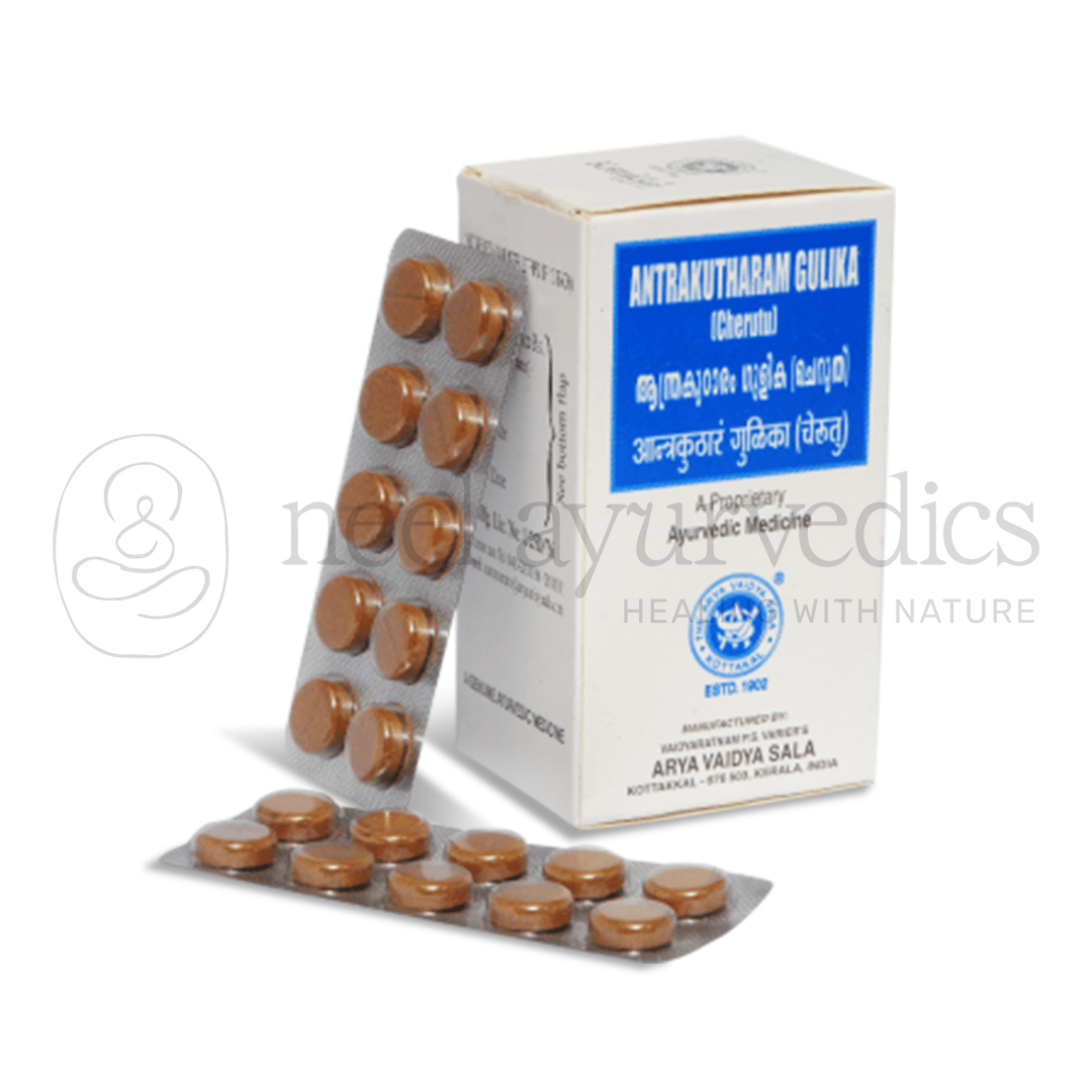 Kottakkal Arya Vaidya Sala Cheriya Anthrakudaram Gulika is a classical Ayurvedic formulation known for its efficacy in relieving abdominal colic, particularly of intestinal, renal, or uterine origin. It is also beneficial in reducing flatulence, gas accumulation, and discomfort related to digestive spasms.