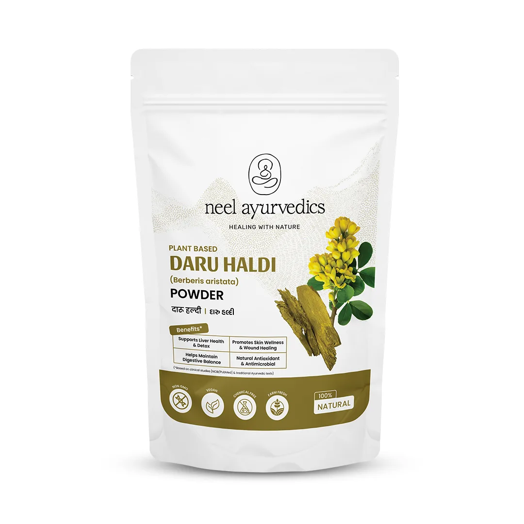 Daru Haldi Churna, also known as Daruharidra Powder, is a powerful Ayurvedic formulation derived from the bark of the Berberis aristata plant. Known for its antibacterial, anti-inflammatory, liver-protective, and digestive properties, this churna is traditionally used to support skin health, liver function, and overall gastrointestinal wellness.