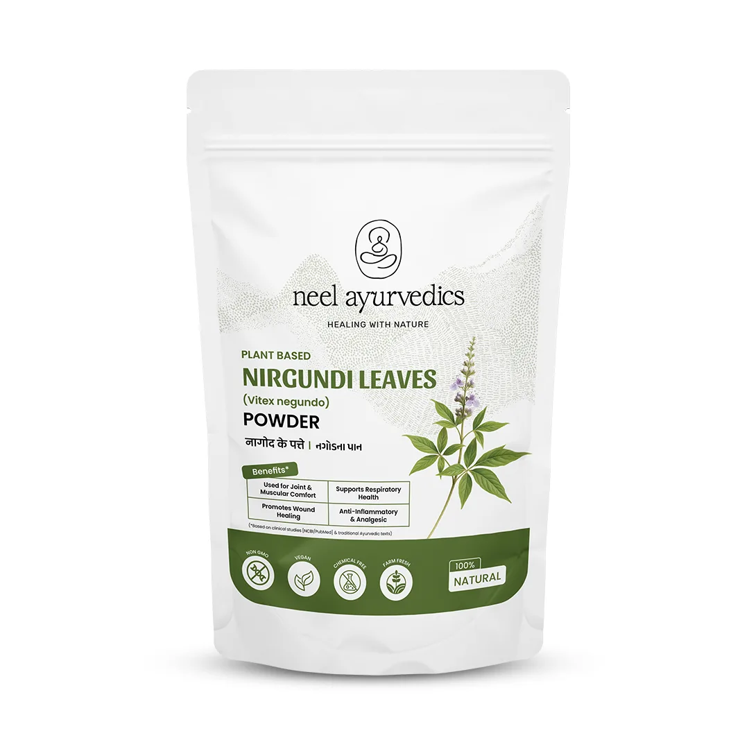 Rich in flavonoids, vitamin C, fatty acids, and natural antibiotic compounds, this powerful herb is known for its broad-spectrum healing properties. It supports respiratory health, hormonal balance, mental wellness, joint comfort, and immune system strength. Nirgundi is especially valued in Ayurveda for balancing Vata and Kapha doshas and offering relief in conditions like arthritis, menstrual cramps, skin issues, and respiratory infections.