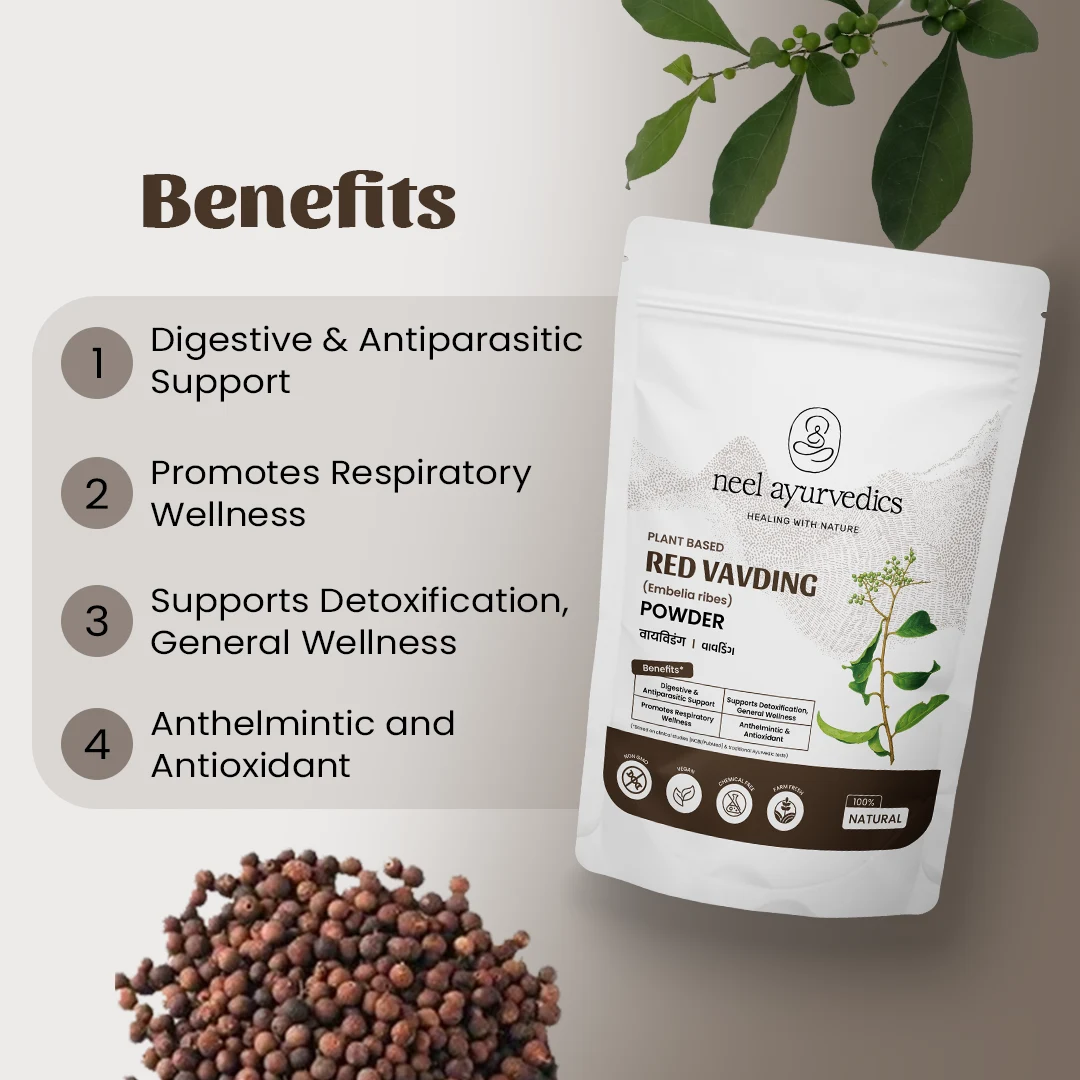 Neel Ayurvedics Red Vavding Powder | Vayu Vidanga Churna | Embelia ribes Powder