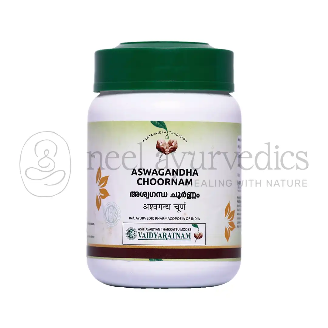 Vaidyaratnam Aswagandha Choornam is a time-tested Ayurvedic tonic for strength, stamina, fertility, and stress relief, making it an excellent choice for restoring both physical and mental well-being.